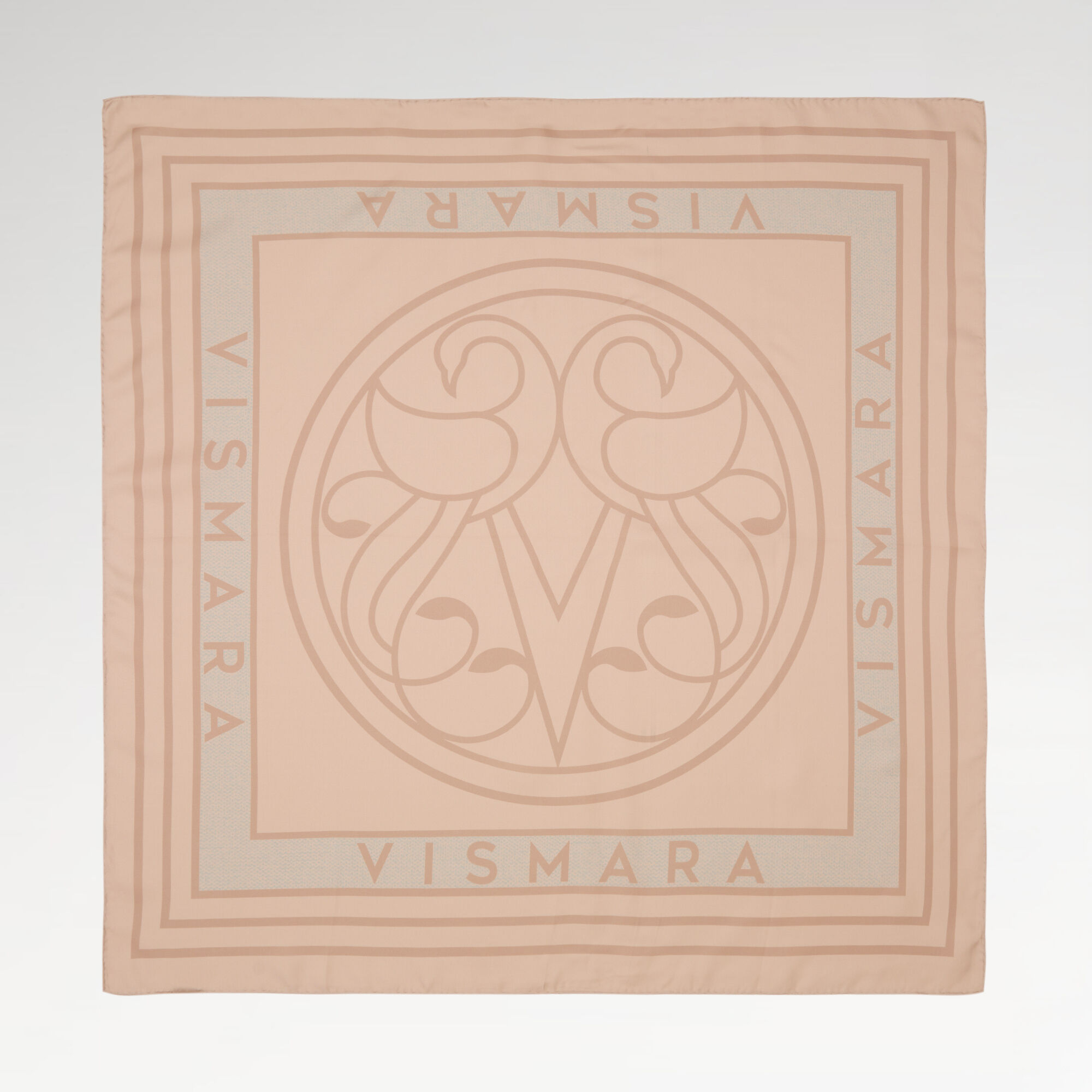 Bej Vismara Kuğu Desen Twill İpek Eşarp