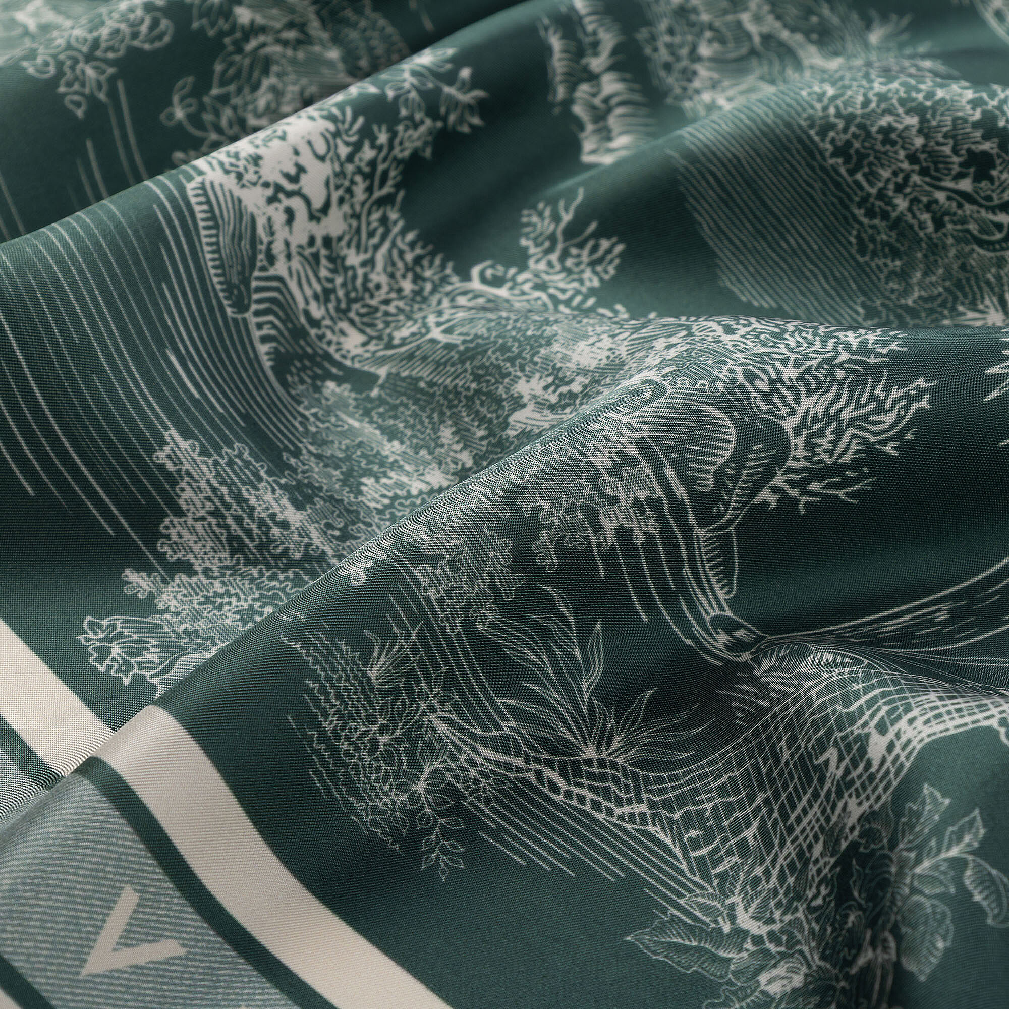 Inspired by the vibrant green of nature, the emerald tone meets French toile garden patterns to create a captivating silk Square Scarf. The 100% twill silk texture deepens the color, perfectly reflecting every detail of the pattern. This Vismara Square Scarf is perfect for those seeking nature-themed elegance. It takes center stage in feminine combinations, especially enlivening neutral-toned outfits.