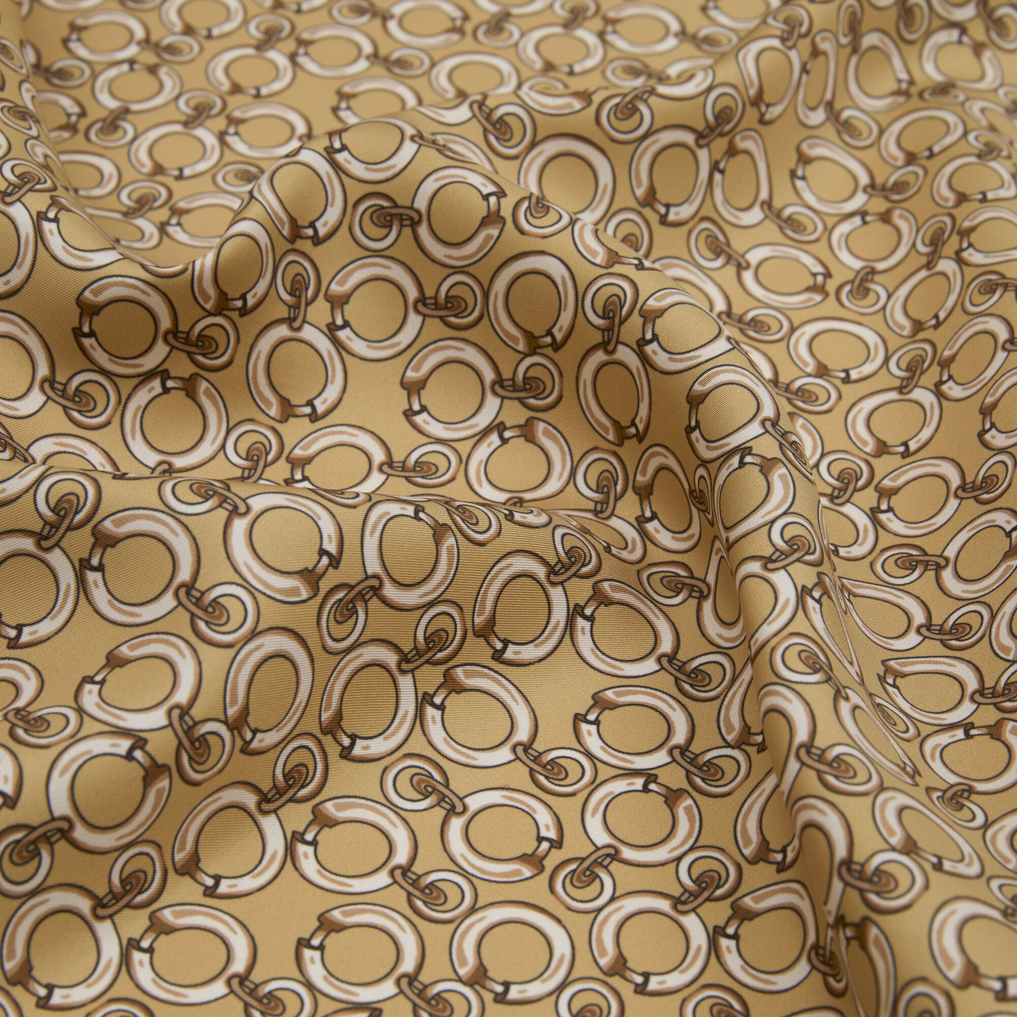 Sciarpa quadrata in twill di seta con motivo a catena dorata