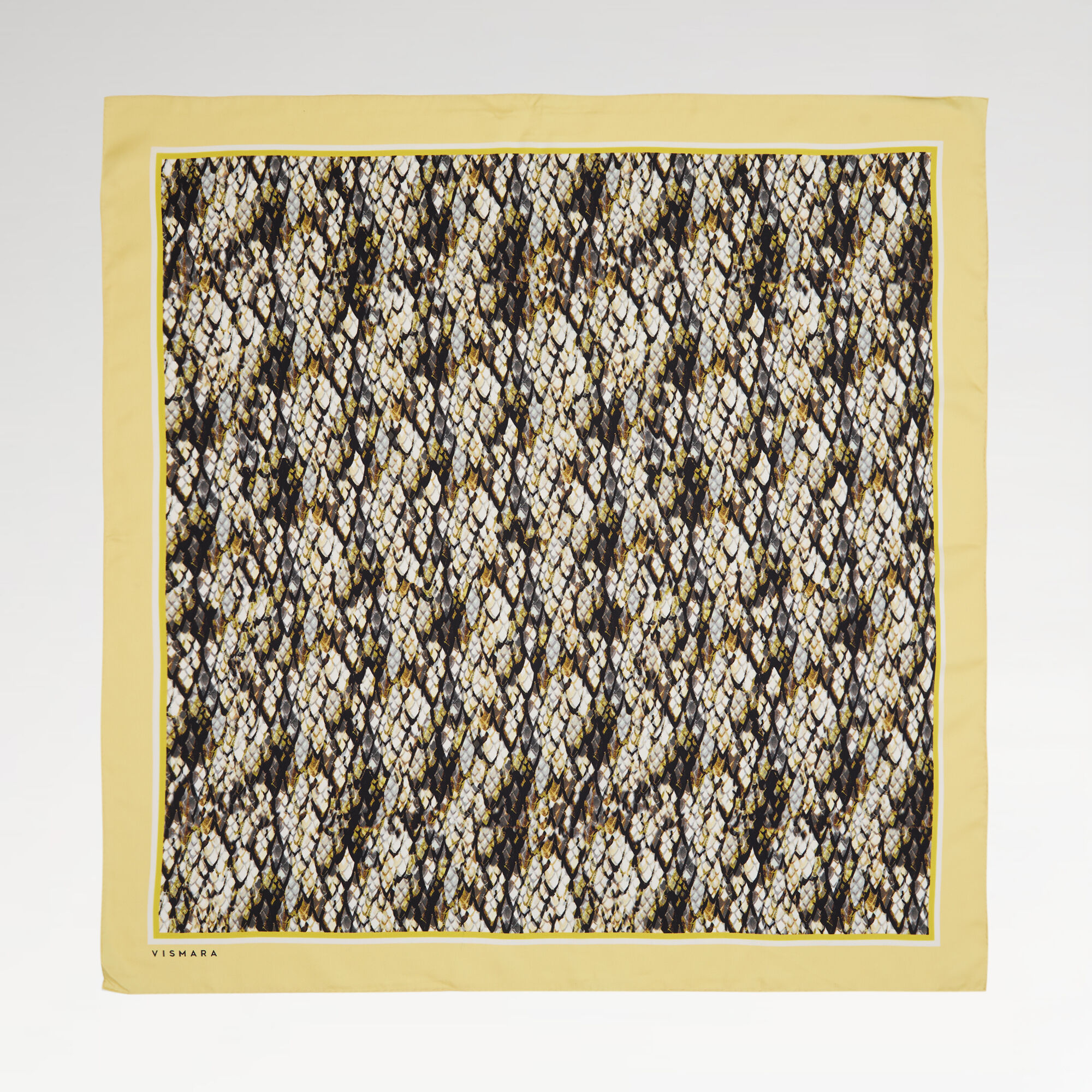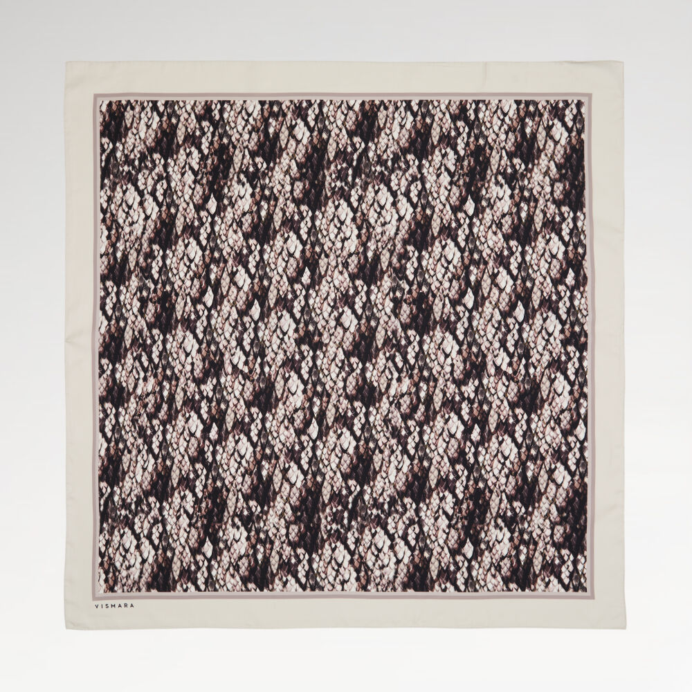 Designed with the elegant flow of snakeskin texture and the soft color transitions of watercolor, this Square Scarf brings originality and elegance together. Prepared with special colors, this design draws attention at every glance, offering a timeless elegance with a modern touch. The sophisticated texture of snakeskin combines with the fluid and dynamic structure of watercolor, adding both power and elegance to your Square Scarf. It is ideal for those looking for a striking and sophisticated style, a piece that will make a difference in any environment.