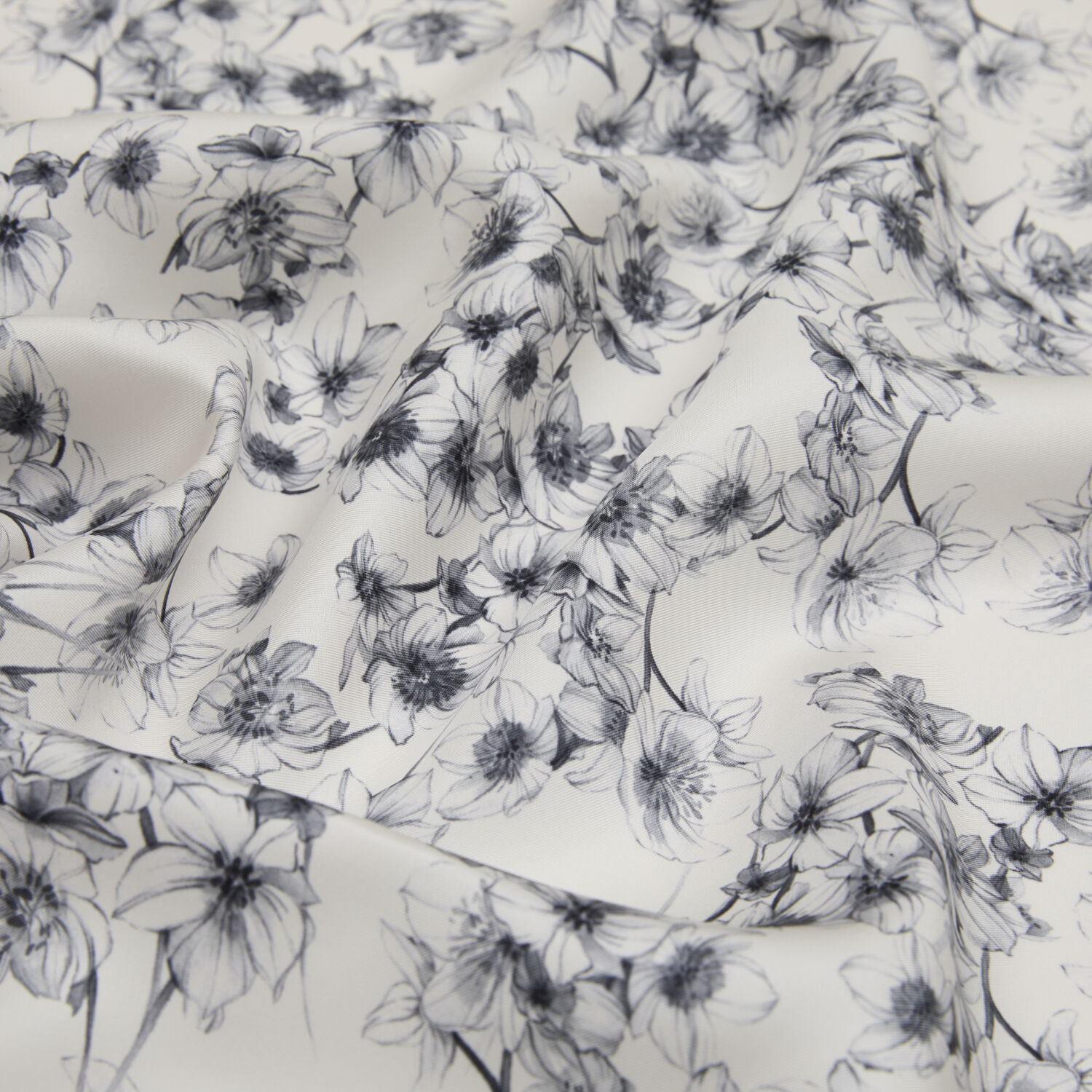 Gri Beyaz Sulu Boya Çiçek Deseni Twill İpek Eşarp