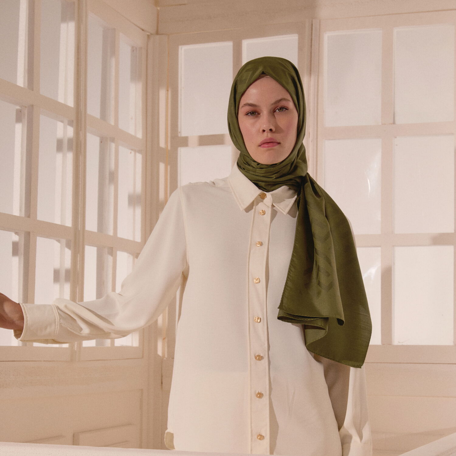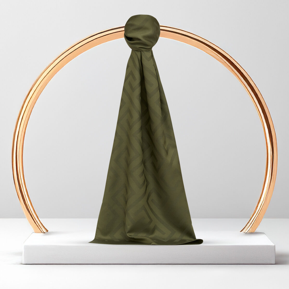 Haki Yeşil G Desen Jakarlı Yün İpek Şal