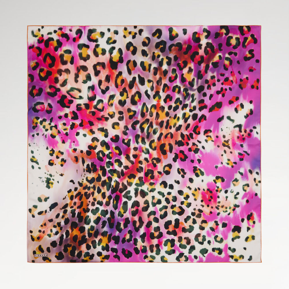 Orange Artistic Leopard Print Twill Silk Square Scarf