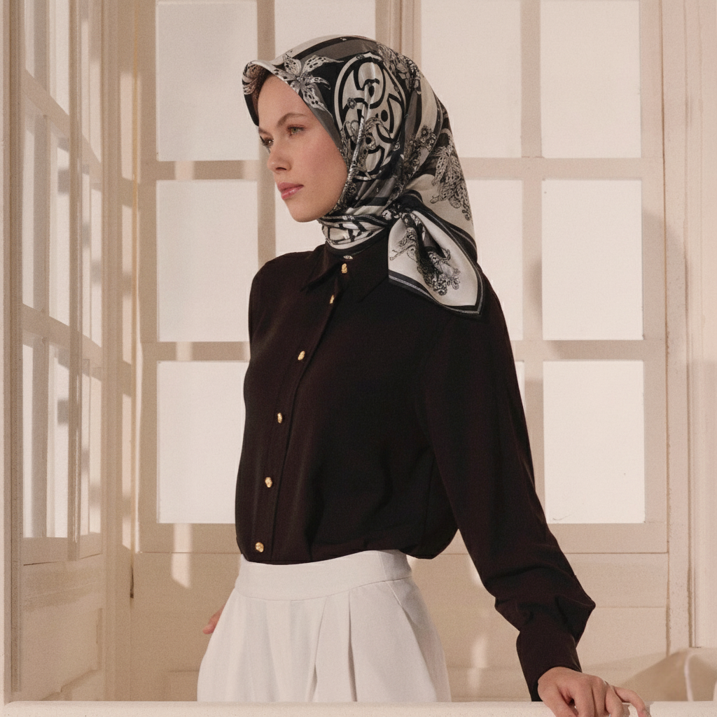 Questo design, in cui eleganti motivi floreali incontrano un ordine sofisticato, sottolinea l'identità unica del marchio con il monogramma Vismara al centro. Le forme geometriche posizionate sulla cornice riflettono il classico e il moderno allo stesso tempo, mentre la raffinata lavorazione dei dettagli aggiunge valore artistico al foulard quadrato. È un accessorio speciale che completa il tuo stile con un tocco elegante in ogni momento della giornata.