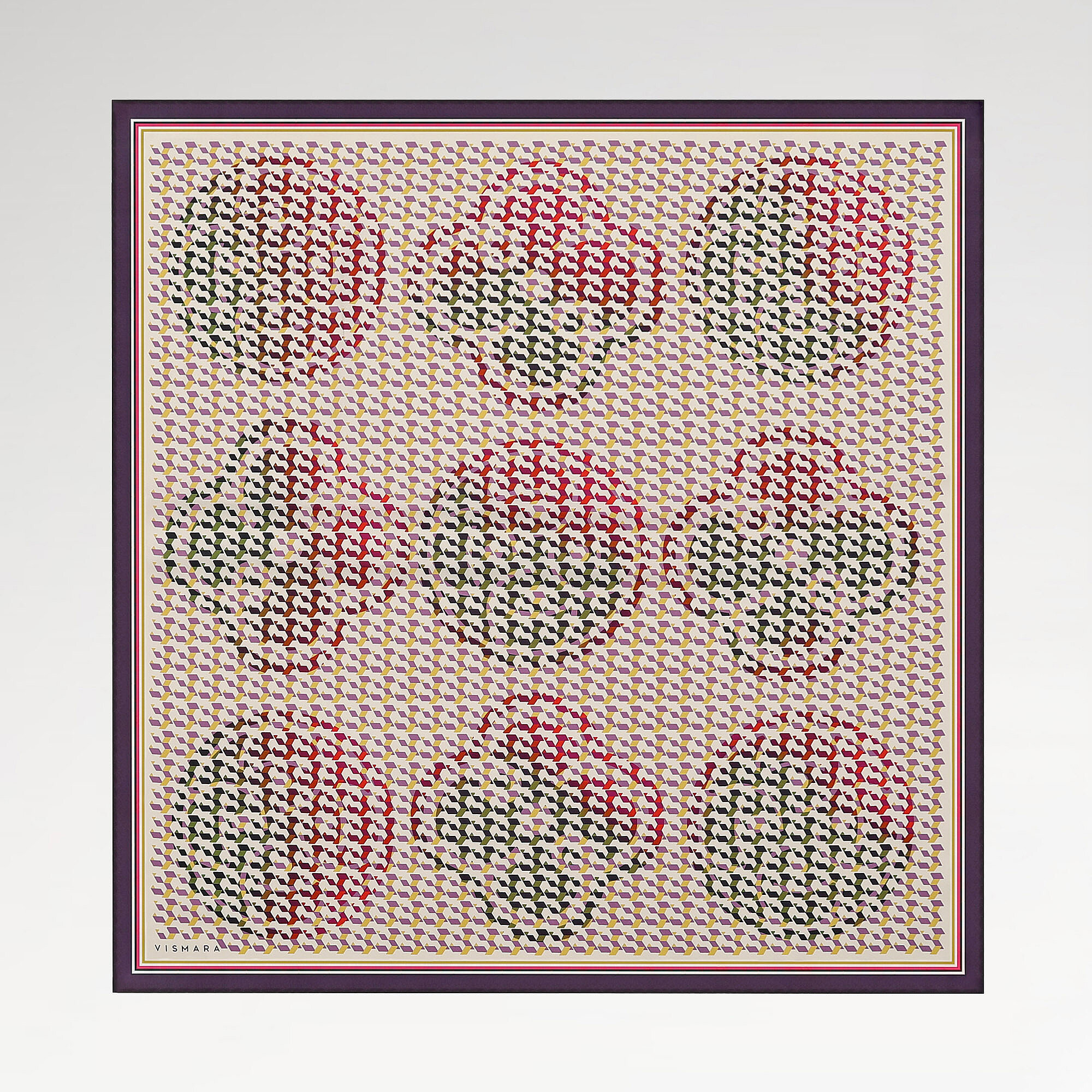 La profonda e ricca tonalità prugna crea un look forte e sorprendente su seta twill 100% con un motivo a monogramma isometrico. Il prugna, un elemento essenziale degli abbinamenti invernali con la sua texture scura e nobile, acquista una profondità unica in questa sciarpa quadrata con i suoi motivi a strati. La sciarpa quadrata in seta prugna di qualità Vismara crea una perfetta armonia di colori con abiti blu navy, neri e grigi.