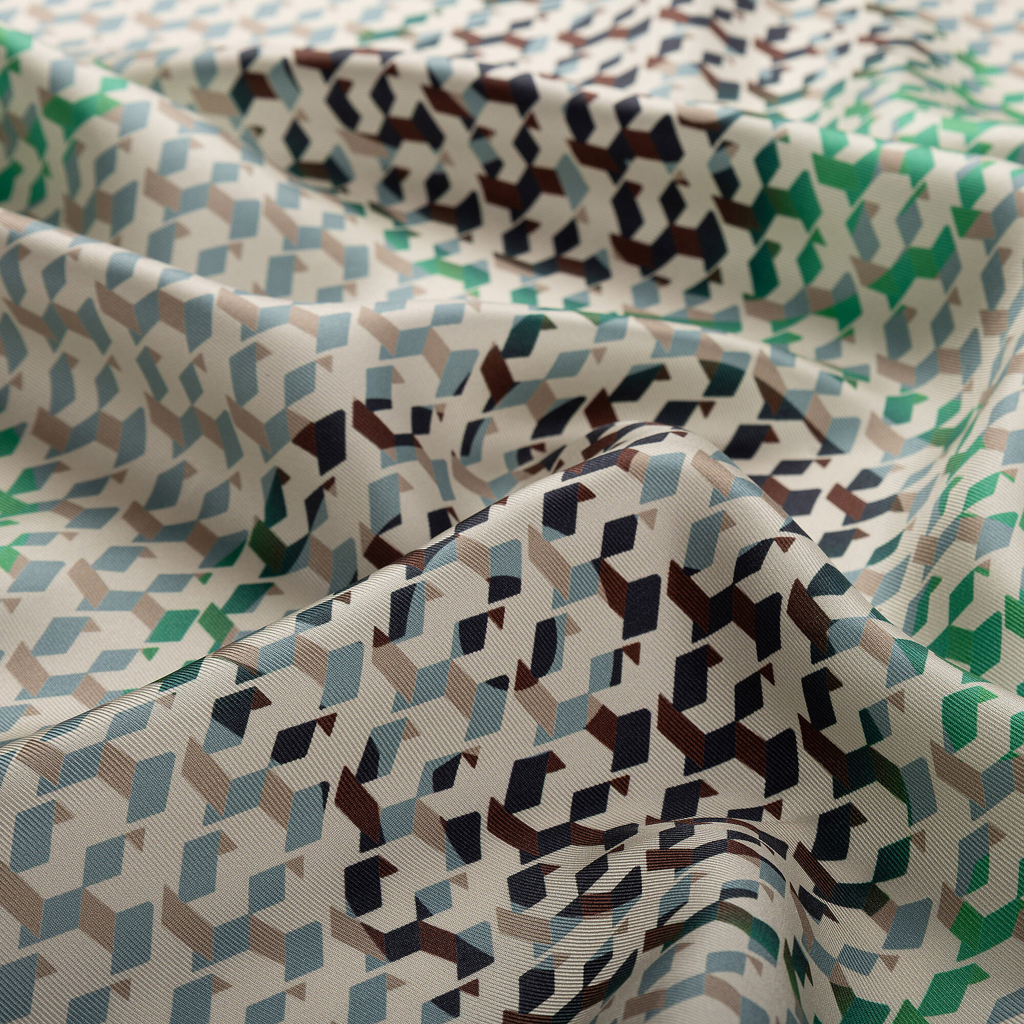 Il verde vibrante della natura crea un'estetica geometrica e organica in 100% seta twill con un motivo a monogramma isometrico. Questa sciarpa quadrata Vismara, moderna e di tendenza, è un'attrazione speciale, soprattutto per chi ama i design di questo stile. L'effetto rinvigorente del verde è bilanciato dalle linee nette del motivo a monogramma, offrendo un look urbano sofisticato e dinamico.