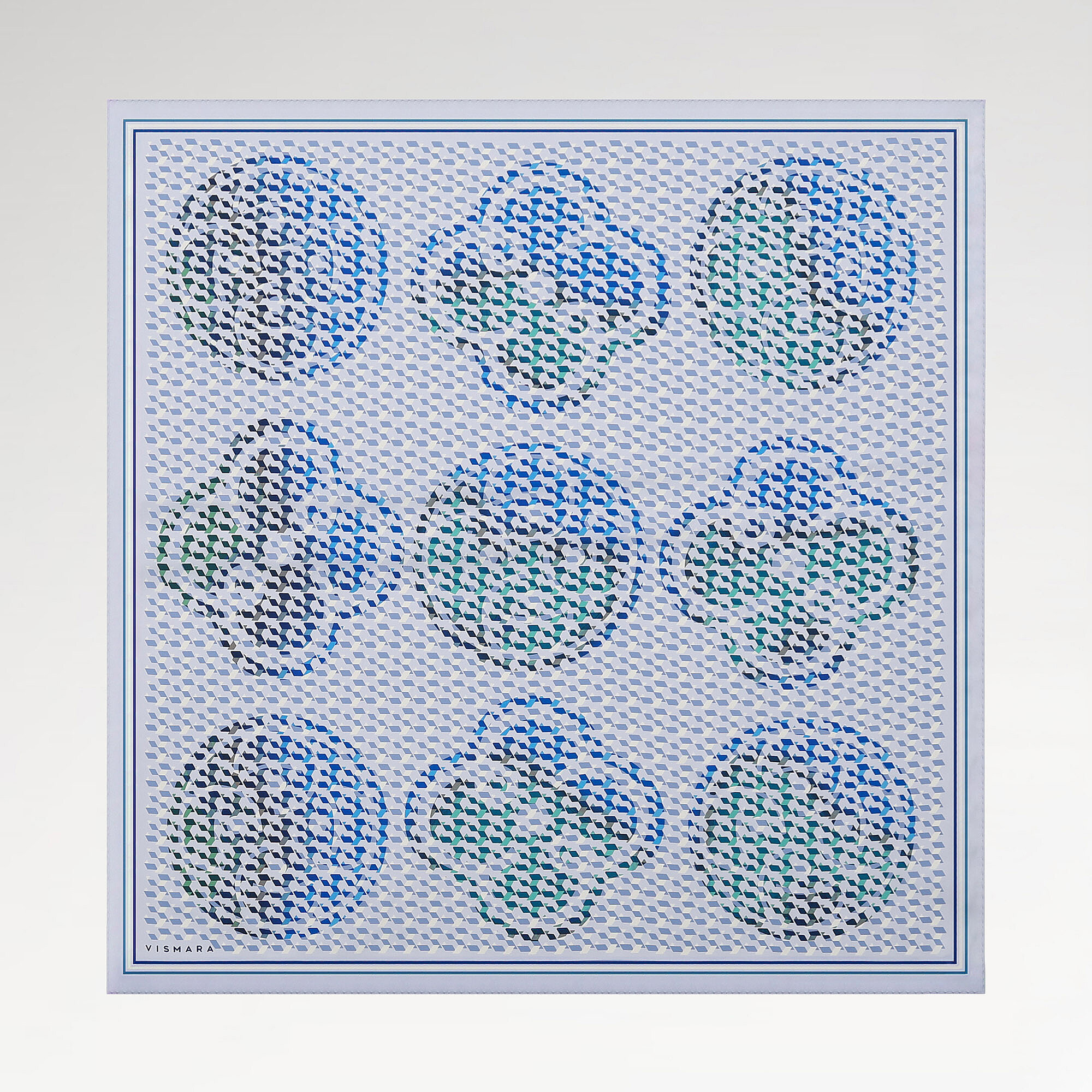 Una classica tonalità di blu con un motivo a monogramma isometrico crea un accessorio moderno ed elegante in 100% seta twill. La natura rassicurante e calma del colore blu incontra le linee nette del motivo geometrico, offrendo un'estetica equilibrata. Prodotta con la qualità Vismara, questa sciarpa quadrata in seta si adatta facilmente a combinazioni quotidiane, da lavoro e per occasioni speciali.