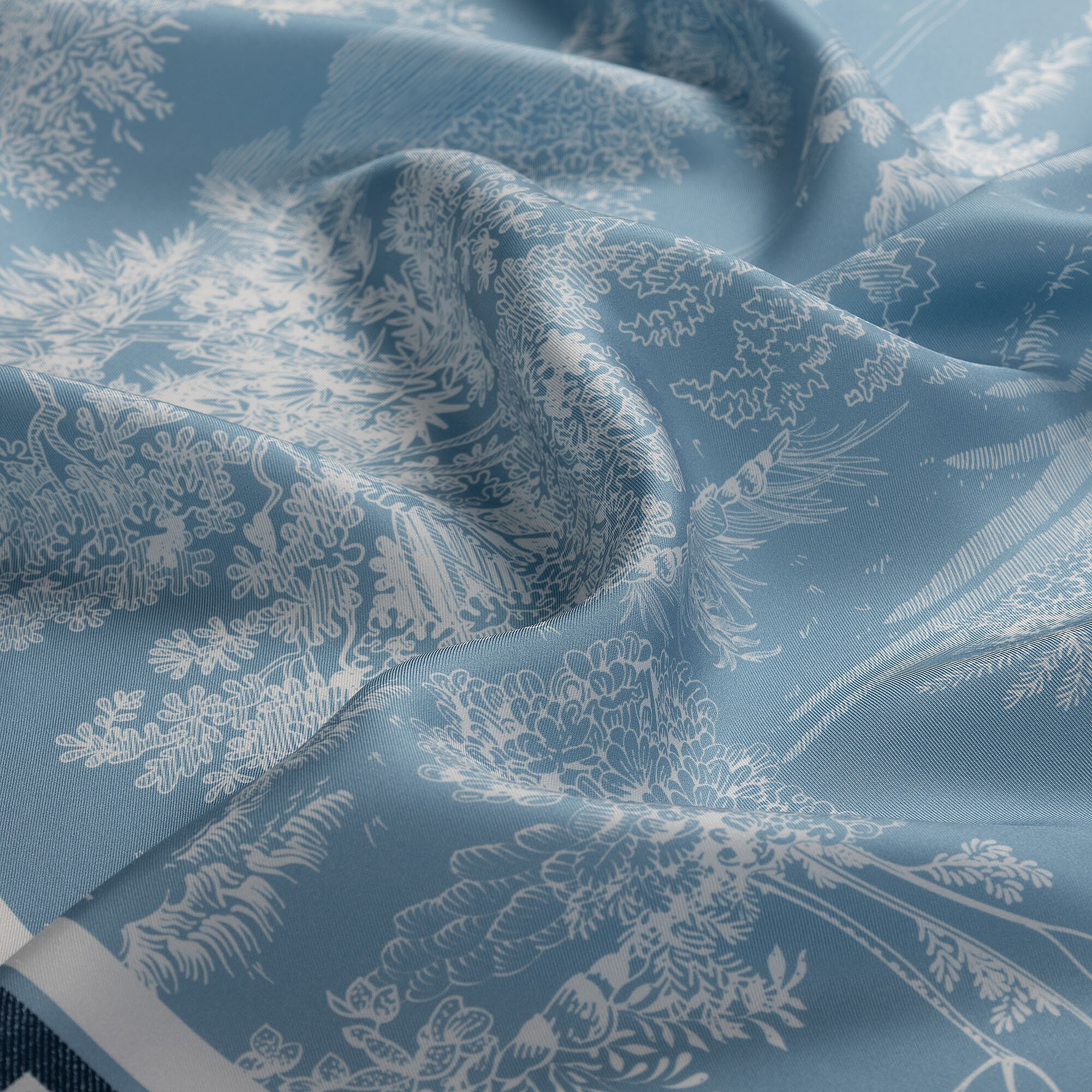 Inspired by the crystal waters of the Mediterranean, the turquoise color, with its garden pattern, creates a striking accessory in 100% twill silk. This vibrant and energetic shade instantly brings life to simple combinations; it looks particularly striking with white or cream-colored clothing. This special silk Square Scarf from Vismara offers a wide range of uses, from holiday chic to city outfits. A summer essential, it complements tropical and bohemian styles.